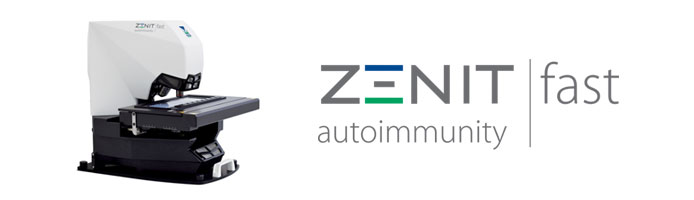 Zenit fast is the new A. Menarini Diagnostics automated system for the acquisition, analysis and storage of IFA slides, which provides laboratories with an efficient solution to improve the management of IFA tests, standardize the validation procedure and reduce intra- and inter-laboratory variability.