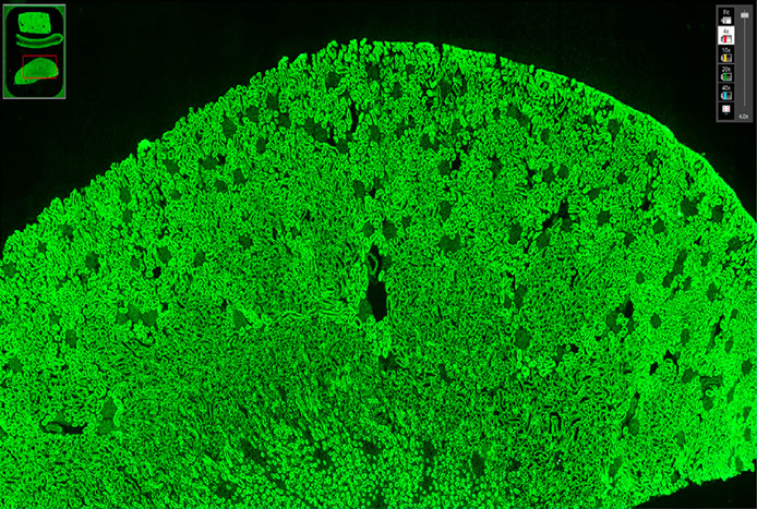 Less than 2.5 minutes/well for tissue slides at 20x