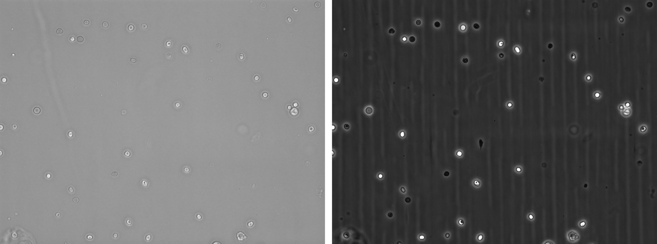 Improved recognition and accuracy. Compared to brightfield microscopy, phase contrast technology provides improved detection of particles and their morphological details, with increased recognition rates.