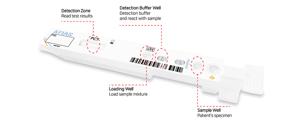 De innovatieve all-in-one cartridge voor eenmalig gebruik is gebaseerd op een lab-on-cartridge-architectuur: hij bevat alle benodigde reagentia om de chemische reactie uit te voeren en maakt een volledige automatisering van het testen mogelijk.