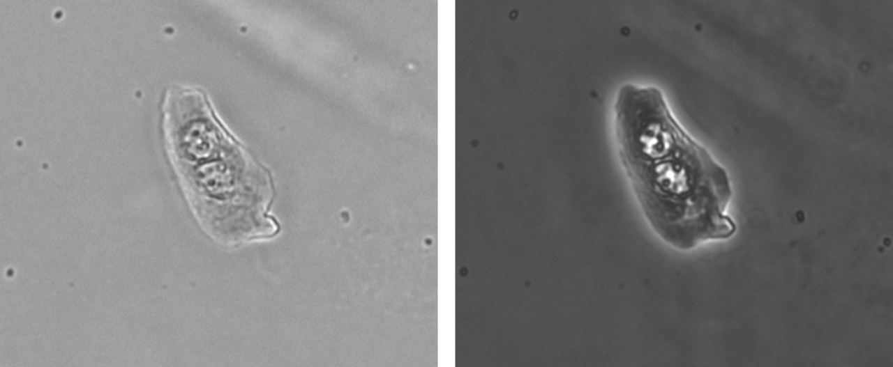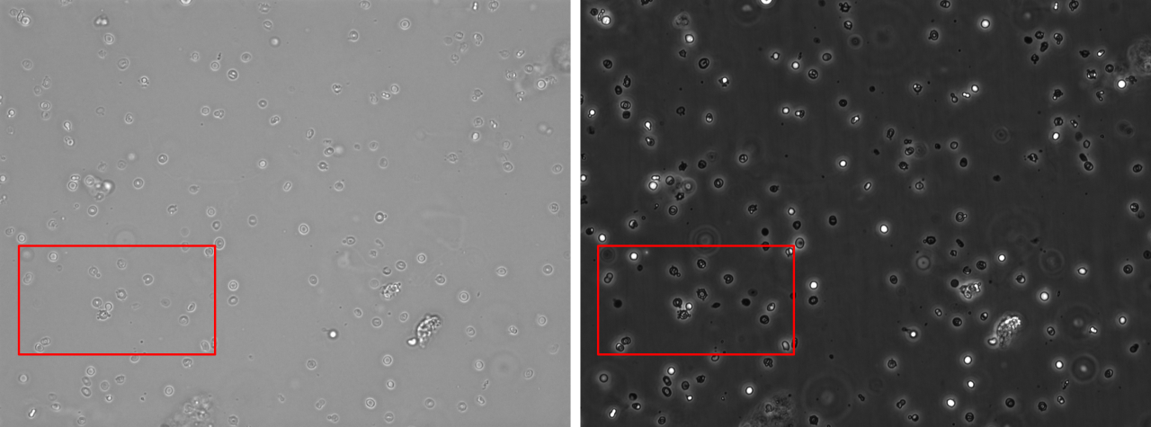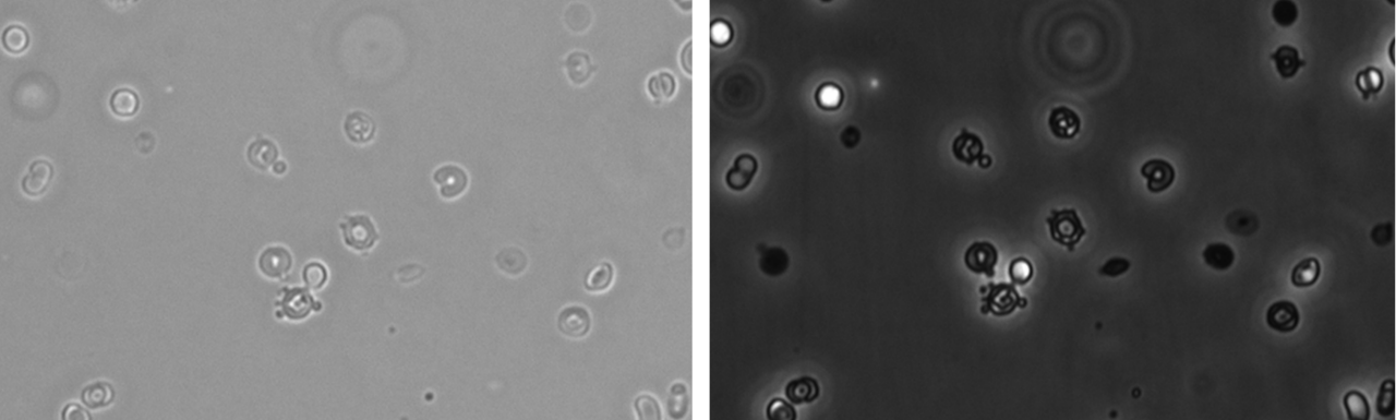 Improved recognition and accuracy. Compared to brightfield microscopy, phase contrast technology provides improved detection of particles and their morphological details, with increased recognition rates.