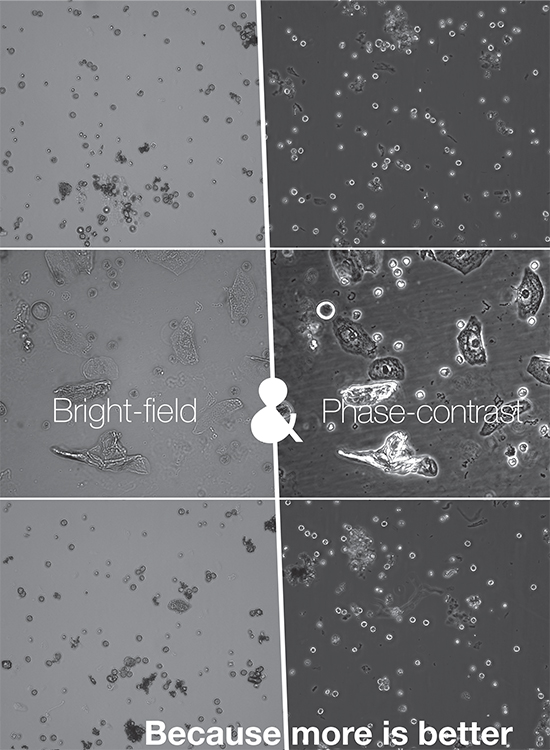 Dankzij de mogelijkheid om de beelden in helderveld en in contrast te bekijken, ontvangt de beoordelingsmodule meer informatie, wat leidt tot nauwkeurigere resultaten